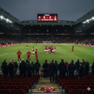 LIVERPOOL — Anfield, benteng yang selama bertahun-tahun dikenal angker bagi tim tamu, berubah menjadi ladang pembantaian yang memalukan bagi tuan rumah. Dalam salah satu hasil paling mengejutkan musim Liga Inggris 2025/2026, Liverpool dihancurkan oleh Nottingham Forest dengan skor telak 0-3 pada Sabtu malam (22/11/2025).